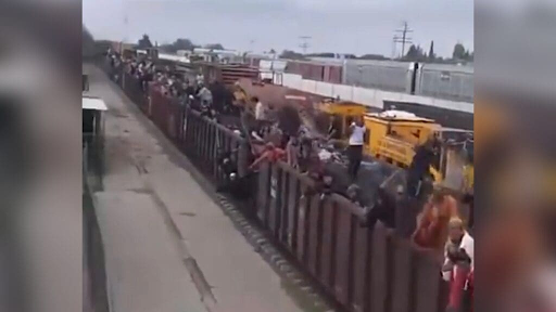 The video posted by Griff Jenkins on Sunday shows at least two dozen open rail cars filled with cheering migrants on a FerroMex train in the town of Zacatecas in north-central Mexico, “**NEW VIDEO** FOX News sources capture a FerroMex train bursting with migrants out of Zacatecas heading to our southern border right now… cheering and clearly not heeding the message: “do not come”